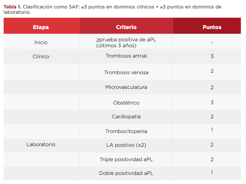 En 2023, el Colegio Americano de Reumatología y la Alianza Europea de Asociaciones de Reumatología publicaron una nueva propuesta de clasificación basada en evidencia más reciente, con un enfoque más inclusivo, sensible y específico, que representa un cambio importante en la forma en que se aborda el SAF desde lo clínico y el laboratorio.1